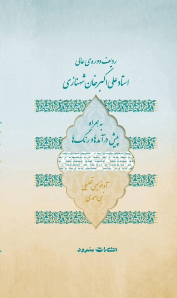 ردیف دوره ی عالی استادعلی اکبرشهنازی : این کتاب در 395 صفحه توسط انتشارات سرود تهران در سال 1399 به چاپ رسید. نگارش این کتاب براساس اجرای ردیف دوره ی عالی تار استاد علی اکبر شهنازی نوشته شده و به صورت تطبیقی با ردیف های موجود- ردیف میرزا عبدالله، ردیف میرزاحسینقلی، ردیف نی داوود، و ردیف صبا- مورد بررسی و تحلیل قرار گرفت. این مجموعه شامل کلیه ی پیش درآمدها، چهارمضرابها، رنگها و ضربی های ساخته ی استاد شهنازی می باشد.